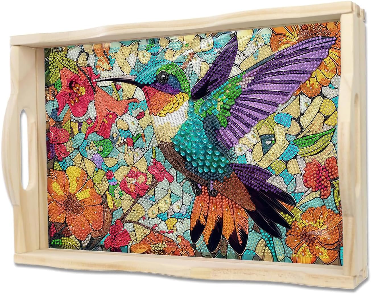 | Included Components | Beads, Glue, PVC plate, essential tools (1 x point diamond pen, 1 x craft tray, 1 x clay), additional craft accessories (screwdrivers, screws), wooden serving tray with handles |