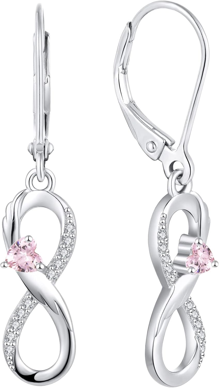 Starchenie Infinity Dangle Drop Earrings 925 Sterling Silver Angel Wings Heart Birthstone Earrings for Women